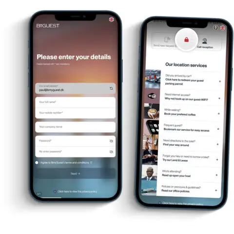 Med BmyGuest får du brugervenlige IT-løsninger, der sikkert håndterer registrering af virksomhedens gæster, udlån af udstyr samt håndtering af indgående pakker.